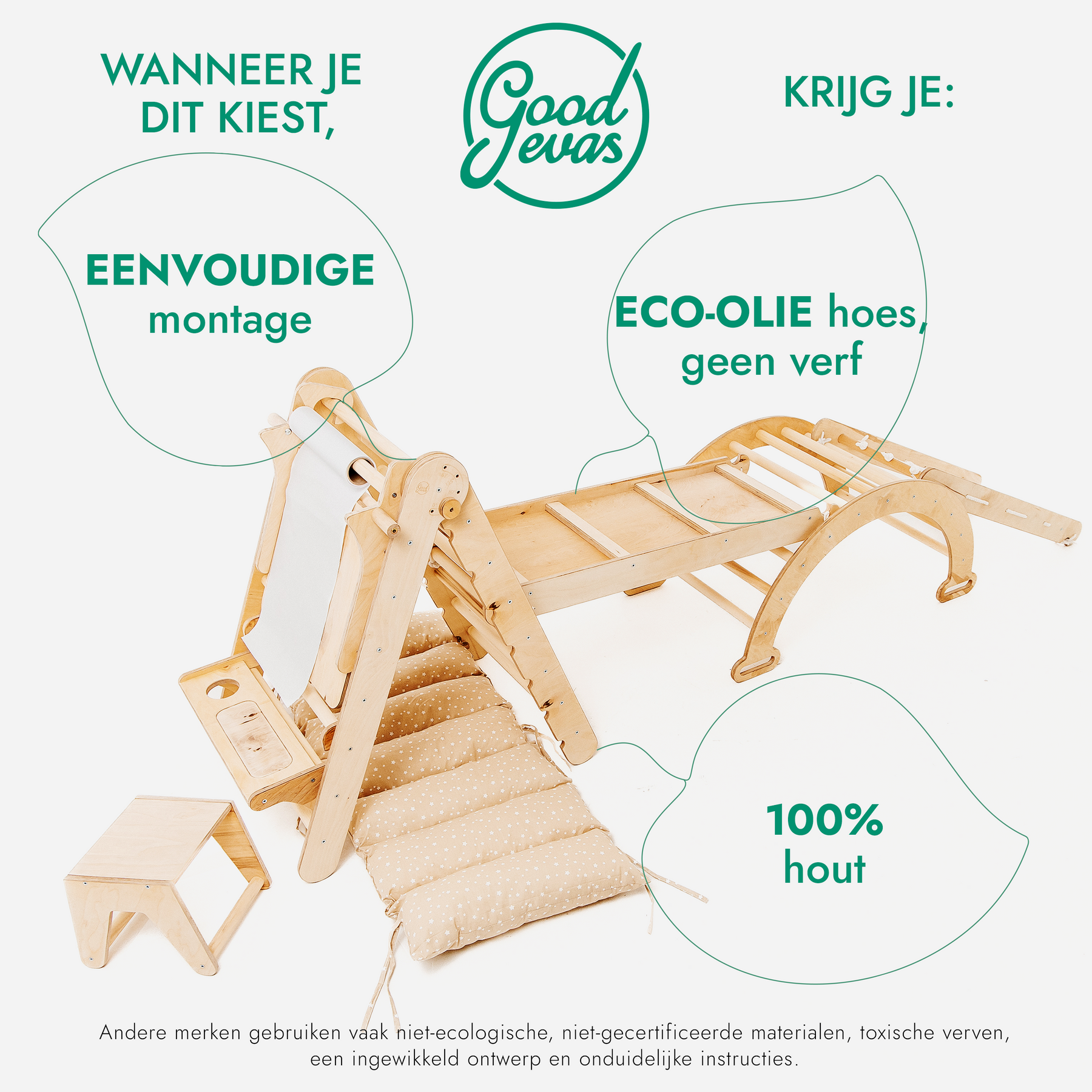 6-in-1 Montessori-Klimrek Set: Driehoek Ladder + Boog/Schommelstoel + Glijbaan/Helling + Net + Kussen + kunsttoevoeging